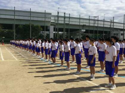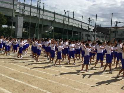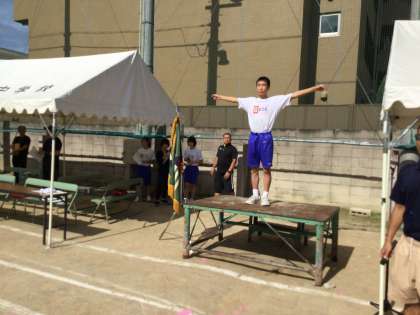 プログラムの最初は、ラジオ体操です。体育委員の号令で、きれいな体操を心がけました。