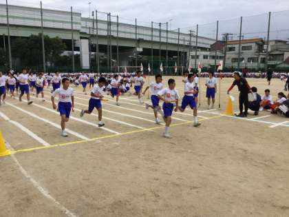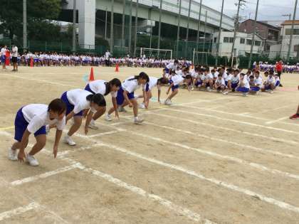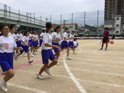 予行では全ての組がピストルでスタートするわけではなくて、1組目はピストルでスタートし、2組以降の組は一斉にスタートとなりました。真ん中の写真です。