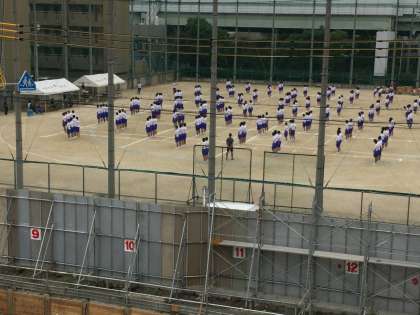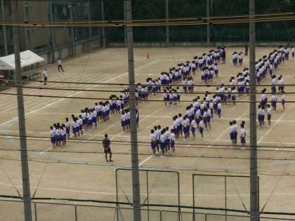 予行演習終了後に、3年生が第2グラウンドに残って、学年競技のマスゲームの練習をしていました。全員が一斉に行うグラウンドでの練習は、体育館での練習とは違っていいですね。