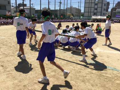 後ろまで回れば前に上から運んで(真ん中の写真が後ろから頭上を越えて前に戻るところ)先頭がスタートします。