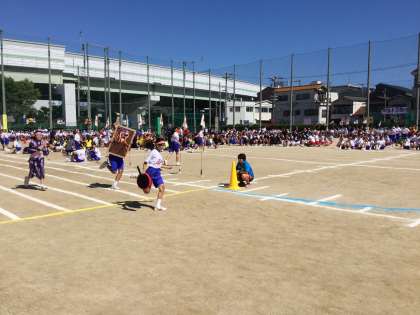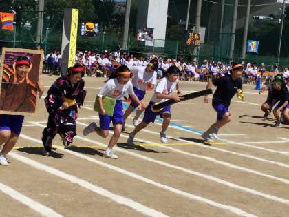 文化部のチームは、いつも使っているものを表した特色のある物品をバトンにしていました。