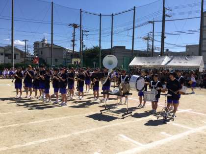部活動対抗リレー中、吹奏楽部が演奏を披露してくれていました。
