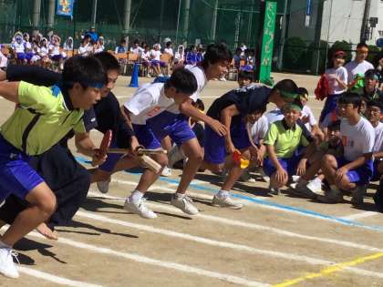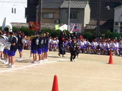 剣道部員は竹刀で打ち合いしながらの周回でした。