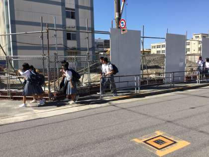 生徒達は工事現場の様子を、横目で見ながら登校してきました。