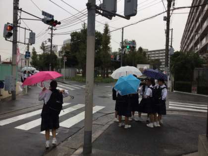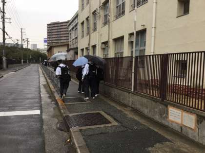 各学年とも英語・数学、そして1・2年生は技術家庭科のテストでした。1・2年生が2号門近くで友達と待ち合わせをし、帰宅する頃に丁度雨が降り始め、傘をさしての帰宅となりました。