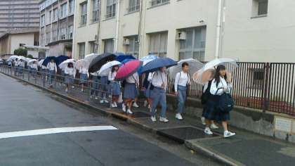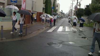 傘をさしての登校