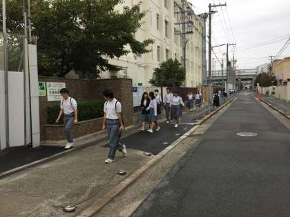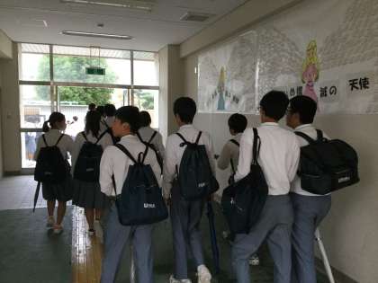 玄関ホールや2号門辺りの帰宅時の様子です。楽しげに友と語らう生徒を多く見かけました。