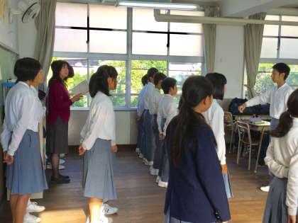 4号館からも歌声が響いており、歌声に誘われて2年4組の練習を見せていただきました。