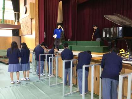 10月25日(木)・26日(金)の文化発表会に向けて、10月22日(月)の1時間目に体育館で会場設営を行いました。2年の生徒が手伝ってくれました。
