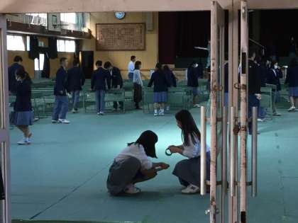 歌島中学校学校体育施設開放事業で、体育館及び講堂を地域の団体に利用していただいています。10月25日(木)26日(金)の文化発表会開催に伴い、体育館の床面に長椅子を並べた状態になります。