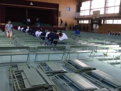 体育館にて文化発表会の会場設営 2