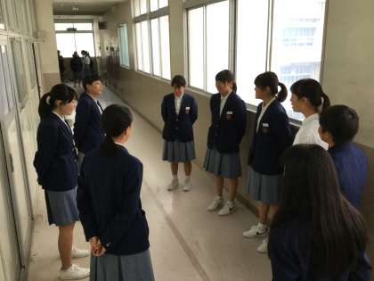 女子は教室前の廊下で、輪になっての歌いでした。