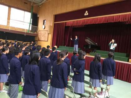10月23日(火)5・6時間目に、2年生が合唱コンクールのリハーサルを行いました。