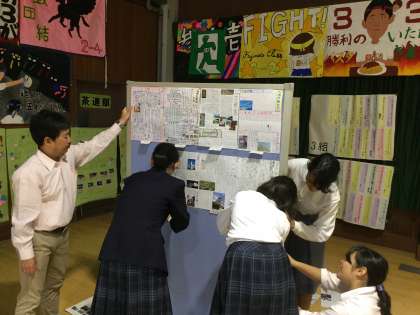 衝立には2年生社会科新聞が掲載されていきました。
