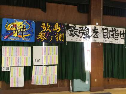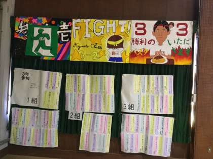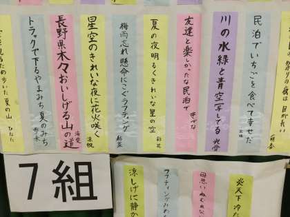 学級旗の下に並んでいるのは、3年国語科で、一人一人短冊に書いた俳句です。修学旅行の思いを詠んだものもありました。