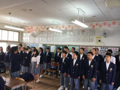 2年3組の練習風景です。初めは女子は廊下で、男子は教室での練習でした。最後に全員が教室の後ろに整列しての合唱でした。