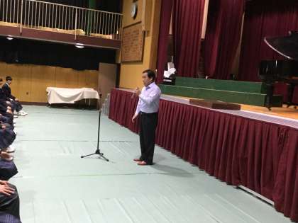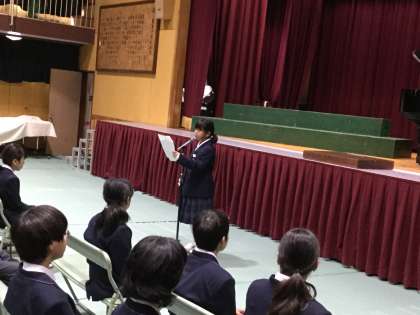 開会宣言、校長先生のあいさつ、生徒代表あいさつ、審査基準の説明がありました。