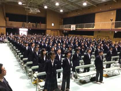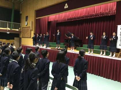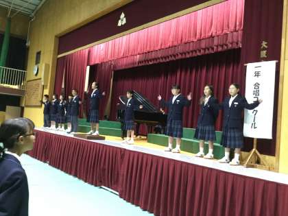 各クラスの指揮者が舞台に上がっての指揮で、全員で課題曲「僕らの世界」を歌いました。