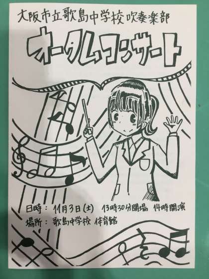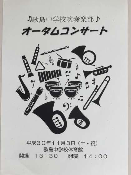 歌島中学校吹奏楽部の「オータムコンサート」が開催されます。