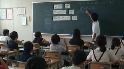 数学はカードを黒板に貼り付けて、わかりやすく工夫がしてありました。