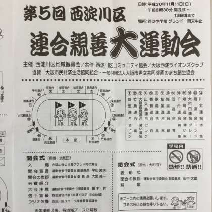 11月11日(日)西淀中学校にて、西淀川区地域振興会主催の、第5回西淀川区連合親善大運動会が行われました。
