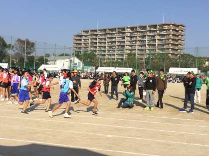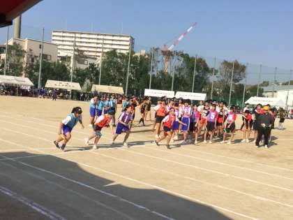 最初の競技は、中学校対抗リレーの女子の部です。歌島中学校の女子チームは、陸上部員と女子テニス部員の混成チームで出場しました。