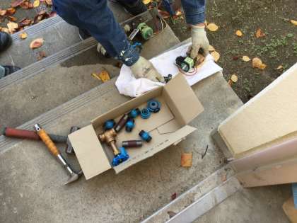 多数のパイプ・ネジ類を組み合わせて、新しい電磁弁が取り付けられました。