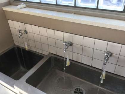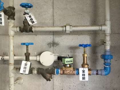 最後に各館各階の蛇口から水を出すことで空気抜きがなされて、いましがた本日の作業終了となりました。