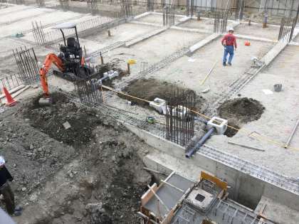 渡り廊下のコンクリート打設と地下の配管工事