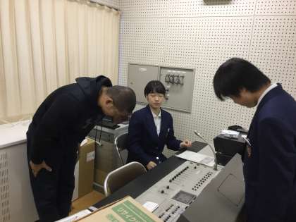 下の写真は放送前に、先生が「 礼 」をされている場面です。