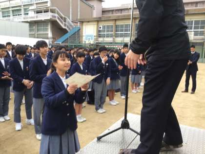 12月10日(月)の全校集会の前に、部活動等の表彰がありました。