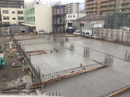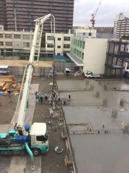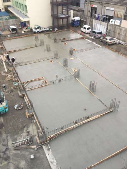 工事現場全面的に、分厚いコンクリートが打設されて行きす。