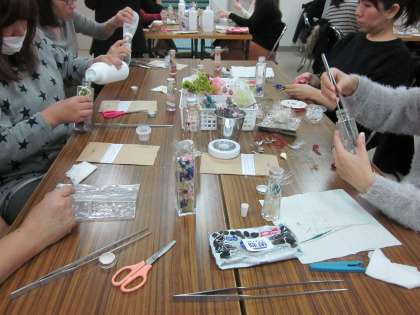たくさんの保護者様に参加していただいて 〜今人気のハーバリウムでお部屋を彩ろう〜 の講習会でした。