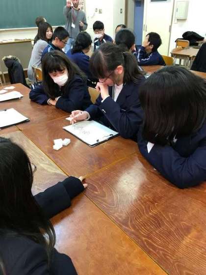 歌島中学校からは6人が参加しました。4つのブースに分かれてC−NETの先生達と英語で活動しました。