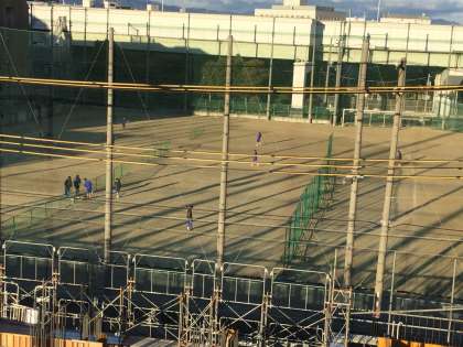 12月28日(金)は、朝から冷え込み冷たい風が吹く寒い一日となり、正門のサクラも、葉をきれいに落しすっかり冬の装いです。工事現場脇の吹き流しが、北風を受けてま横に舞っています。寒風の中体育館やグラウンドでは、生徒たちが部活動に頑張っていました。
