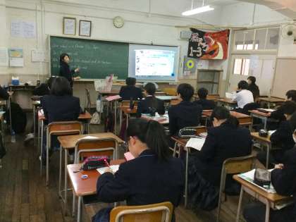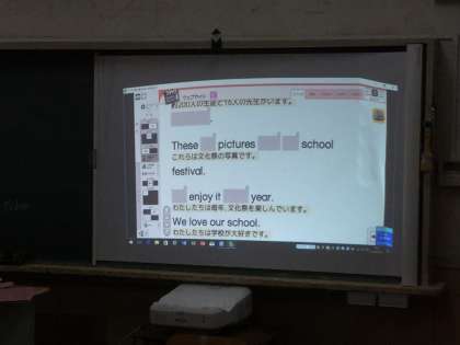 英語で外国の方に、歌島中学校を紹介する場面設定でした。