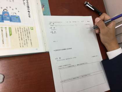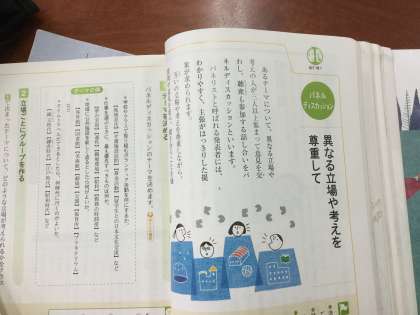 2年6組は国語で、「異なる立場や考えを尊重して」のタイトルの授業でした。