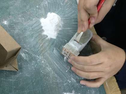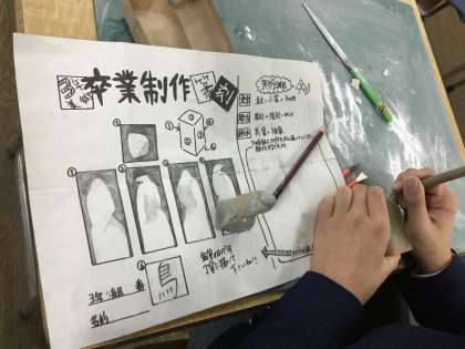 「卒業制作篆刻」で、高麗石を彫刻刀などで掘るものでした。各人の思いでそれぞれが意匠を凝らしたデザインで切り刻まれていました。