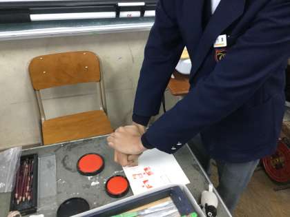 早くも朱肉をつけて試し刷りをしている人もいました。