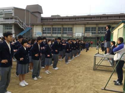 生徒会長の号令での自主的な整列で、前へならへでしっかり並んでいました。