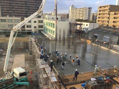 冬の日照時間の短い作業時間の中での、コンクリート打設ご苦労様でした。