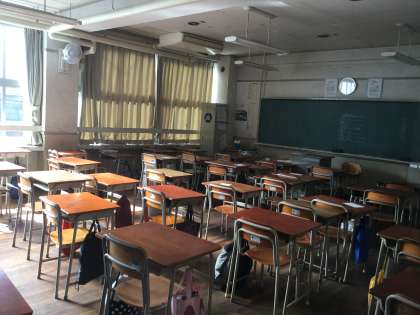風邪・インフルエンザによる感染予防のため、1年4,5,6,7組並びに、2年1組と3年8組が、明日1月17日(木)まで学級休業となっています。