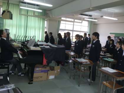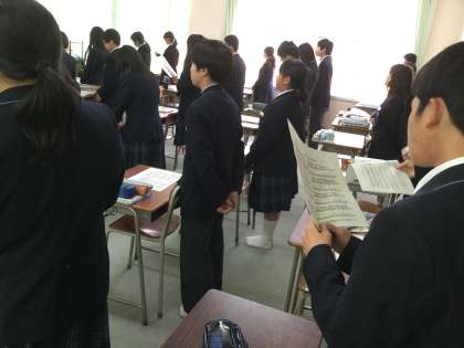 授業の初めのほうに参観しましたので、卒業式に向けて「校歌・君が代・大阪市歌」などをピアノに合わせての歌いでした。