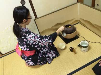 8月4日(月)歌島中学校の和室で茶道部のお点前がありました。