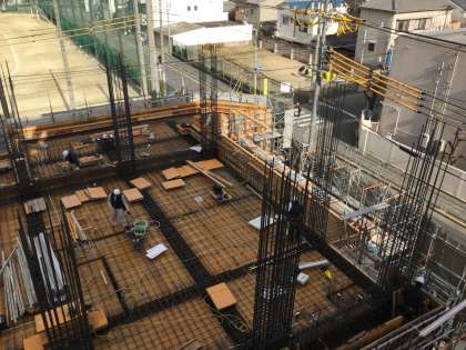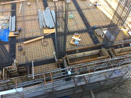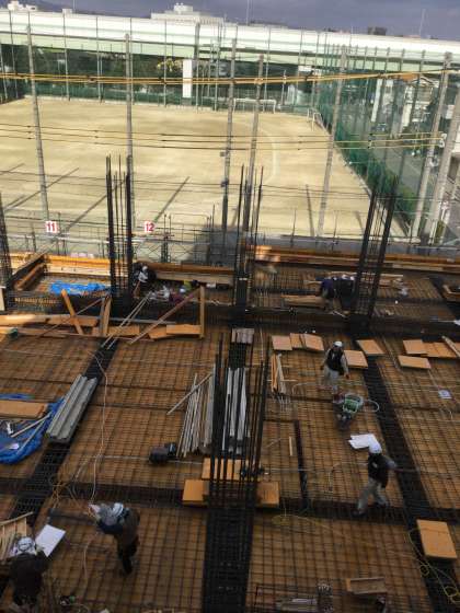 生コンクリートが流し込まれる場所が、鉄筋の密集度で分かるくらいになりました。