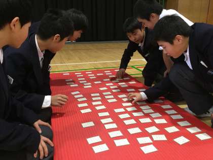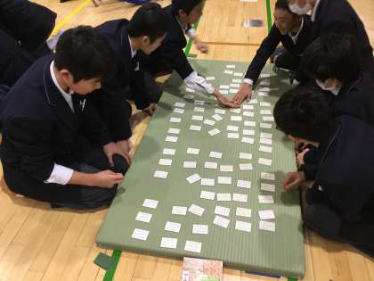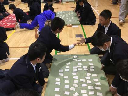 札を取りに行ったのが同時になり、じゃんけんで決めるときもありました。中には3人が同時の場面も見かけました。取った札を相手に見せて間違いないことを確認してもらっていました。