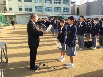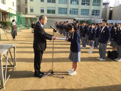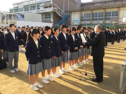 2月12日(月)の全校集会前に、部活動表彰がありました。