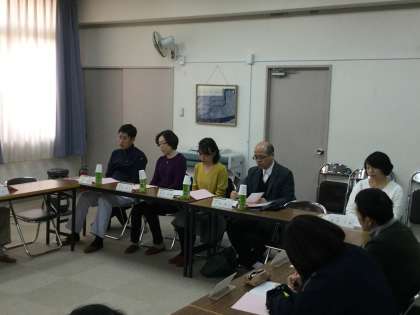 学校医(内科)の辻勝成さん、眼科医の大川亜椰さん、歯科医の吉田智子さん、薬剤師の宇高重人さん、PTA副会長の牧畑千尋さんに出席していただきました。中学校から管理職3人と、首席、保健主事、健康教育部長、養護教諭、栄養教諭が出席しました。