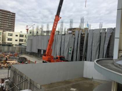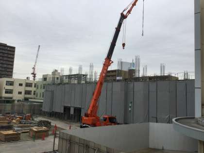 以前から西工区には足場にネットが取り付けられていましたが、今日は東工区にもネットの取り付け作業が行われていました。