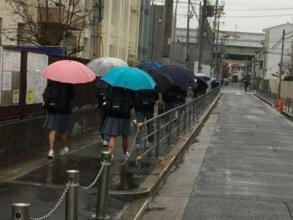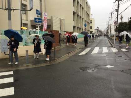 2月19日(火)の朝は、本格的な雨で傘をさしての登校となりました。